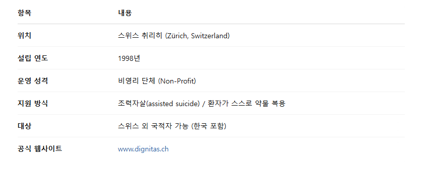 스위스 취리히에 위치한 디그니타스(DIGNITAS)는