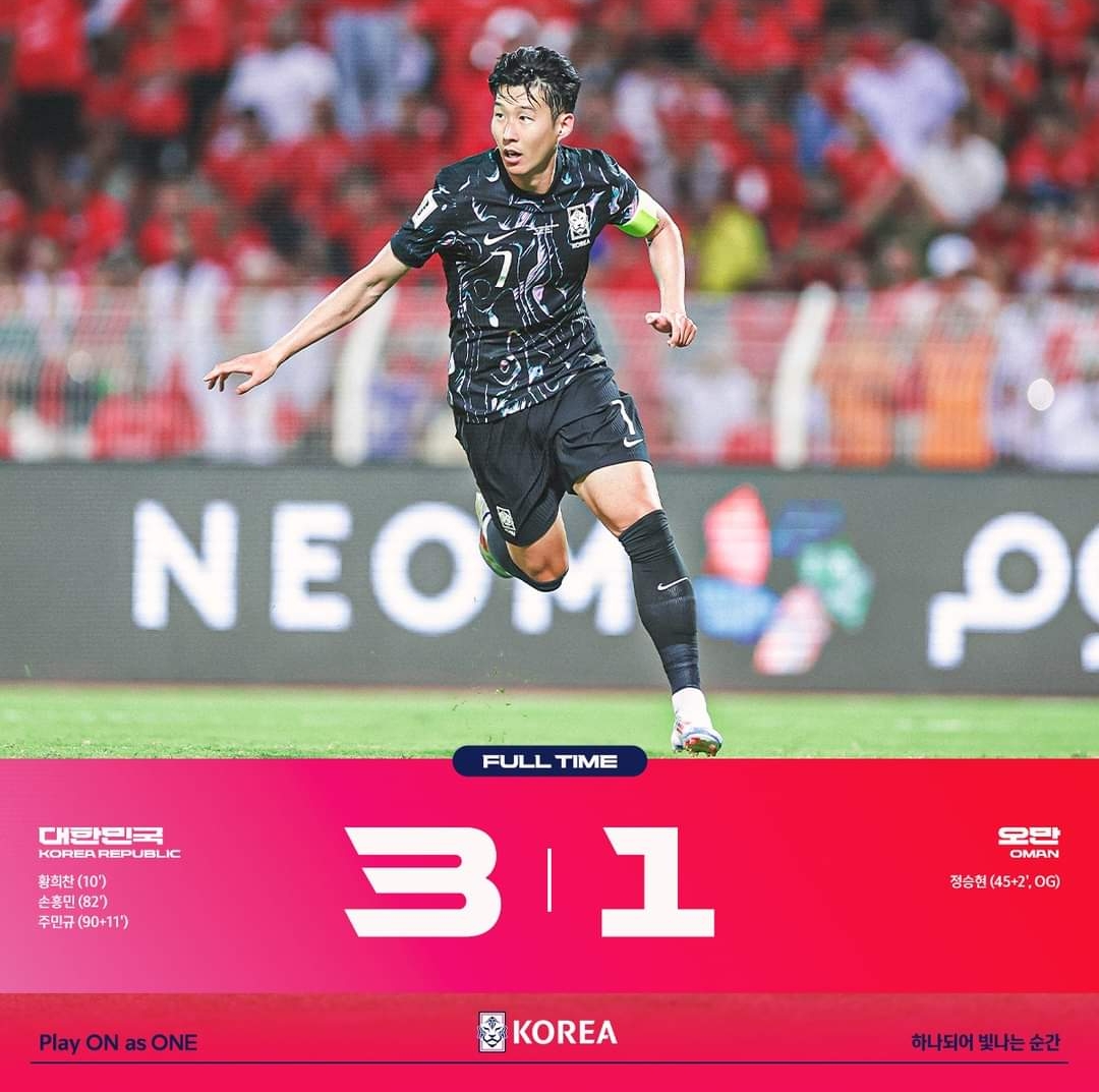 오만 원정을 이겨내며 귀중한 승점 3점을 얻어낸 대한민국입니다.